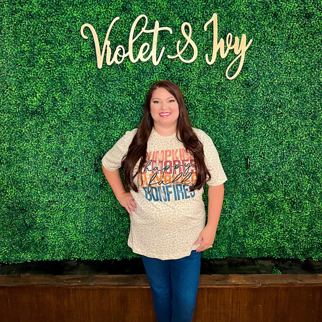 Welcome fall fashion with our irresistible Leopard Happy Fall Graphic Tee! Redefine your look by blending comfort and fashion effortlessly. Your ultimate pick for a cozy, curvy fall style!